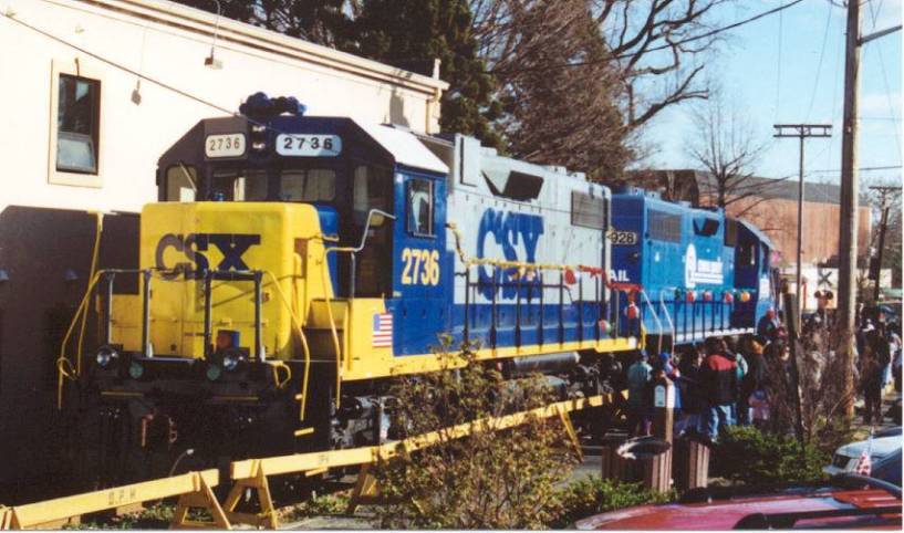 There was quite a crowd for the two hours the train was there. As with last year's train, a PRR and CSX unit were used. The PRR 2928 is a GP38, while CSX 2736 is a GP38-2. Children were able to have their photo taken in front of the locomotive while sitting on Santa's lap.